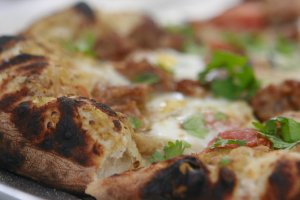 Brad’s Corner: Fire Roasted Eggplant Tomato and Sausage Pizza