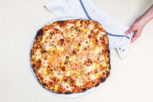 The dough being layered in foil would allow for an interesting development of an intricate lattice work of holes and pockets in the dough. This is where the “air” mentioned earlier would come into play. Once baked, the underside of the crust would have this lattice work of pockets where the CO2 from the yeast would form pockets between the dough and the foil. The pizza was constructed with the dough still on the foil and the entire assembly was put into the oven. Once done, the pizza was pulled and the foil removed before slicing. The bake time was somewhere around 20 minutes and the ovens were the old style large wide deep pizza oven with I believe 3 tiers. They would move pizzas around and sometimes even from tier to tier to get the perfect bake (which could be varied a bit by request, but I preferred a nicely browned under-crust and rim). If you looked at a side profile of a slice, you could see the small intricate network of holes in the crust from the slow proof of the dough. Overall thickness of the finished product was probably around an 1/8th of an inch to possibly 3/16ths. So, it would be considered a thin crust (but, in no way to be confused with a cracker crust). Of note, is that there was never any indication of oven spring in the finished product. No large bubbles etc… If you google Pizza Villa you can find their Facebook page and there see a few pictures of the pizza. There was very little rim on the finished pizza as they put sauce and toppings out to the very edge of the pie with only a very small bit of exposed crust (which would get delightfully browned and was a treat to eat, for me anyway). When first pulled from the oven and sliced, each slice could stand rigid when picked up despite their copious toppings. Of course, eating the pizza there while it was fresh from the oven was the very best way to experience it, but often I was getting take-out. In which case I always had to eat a couple of slices on the way home…
