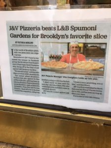 J&V is quite proud of this headline. Rightly so. I actually prefer their Sicilian over L&B’s, because the crust is more airy while still retaining a creamy texture and good snappy under-crust.