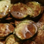 So, what do you do when you have a pepperoni craving and no pepperoni? You improvise! I made some home made pepperoni one time and then had the idea to use those spices and seasonings to make up pepperoni flavored broccoli stalks. *Link to recipe here. Why stop with just broccoli stalks? They were great, but let’s give it a whirl with some zucchini I have sitting here. For this pepperoni pizza, I also thought about gourmet-ing it up using “artisan pizza” ingredients. Check it out…